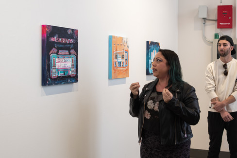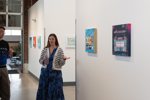 Thanks to everyone that joined us Saturday, December 14 for the Artist Talk and Exhibition Tour with Max Kauffman. The Denver-based artist was accompanied by artist and preservationist Krystal Marquez and architectural historian Britanny Bryant. Guests got to hear a beautiful and engaging conversation about Max's artistic processes and inspirations as well as fascinating and informative stories from Krystal and Brittany about the (mostly) Denver places that inspired the exhibition. We hope people left with a little extra appreciation for these old buildings and maybe feel their unique essences through Kauffman's artistry.